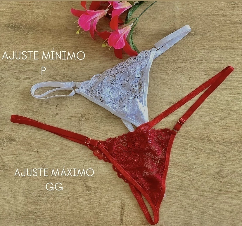 A Calcinha Fio Dental com renda na parte frontal, laterais finas e com regulagem, e uma linda aplicação de borboleta🦋 com lantejoulas✨ na parte de trás, que destaca e valoriza o bumbum.